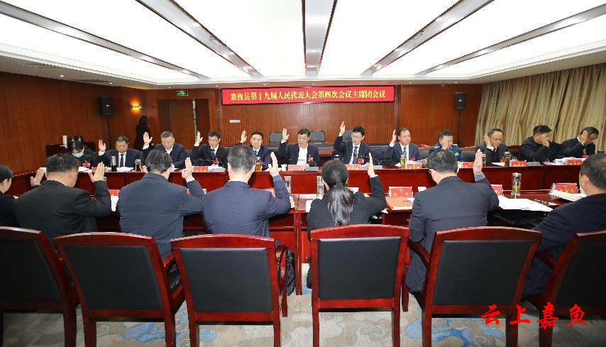 1月5日上午,嘉鱼县第十九届人民代表大会第四次会议主席团第三次会议召开。县委书记王永出席会议,县人大常委会党组书记、主任李德炳主持会议,县政协党组书记、主席余忠东,县委常委、县纪委书记、县监委主任聂明新,县委常委、组织部部长费海喜,县委常委、县人武部政委张伟等出席会议。