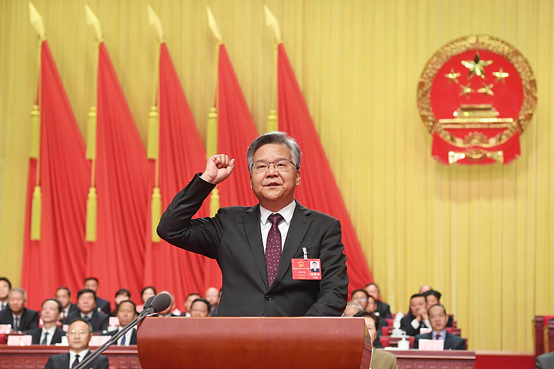 上午9时,大会开始。大会主席团常务主席、执行主席张文兵主持会议。大会执行主席吴海涛、王艳玲、马国强、胡志强、郄英才、吴锦、孙兵、李军杰、马泽江、纪道清在主席台执行主席席就座。 出席会议并在主席台就座的还有:王忠林、李殿勋、蒋超良、王晓东、孙伟、张昌尔、诸葛宇杰、侯淅珉、郭元强、宁咏、王林虎、琚朝晖、邵新宇、郦斌、江勇、刘雪荣、刘晓鸣、杨云彦、王玲、梁伟年、周洪宇、万勇、徐文海、程用文、张文彤、陈平、蔚盛斌、彭勇、尔肯江·吐拉洪、王兴於、肖菊华、游劝荣、王守安、胡正强、杨自春、盛阅春、胡立山、李富民、韩进、钱建余、张爱国等和主席团其他成员。 本次会议应到代表721人,实到代表699人,出席人数符合法定人数。 会议以按电子表决器的方式,通过了省十四届人大三次会议监票人、总监票人名单。 接着进行大会选举。监票人、总监票人在自己座区投完票后,各位代表依次走向票箱,投下神圣的选票。 9时40分许,张文兵宣布选举结果:王忠林当选为湖北省第十四届人民代表大会常务委员会主任,李殿勋当选为湖北省省长,王济民、刘治田、刘海军、肖红梅当选为湖北省第十四届人民代表大会常务委员会委员。 会议表决通过陈亮为湖北省第十四届人民代表大会民族宗教侨务外事委员会主任委员。 按照主席团第一次会议通过的宪法宣誓方案,当选的省十四届人大常委会主任王忠林、省长李殿勋、省十四届人大常委会委员,表决通过的省十四届人大民族宗教侨务外事委员会主任委员进行了宪法宣誓。 |